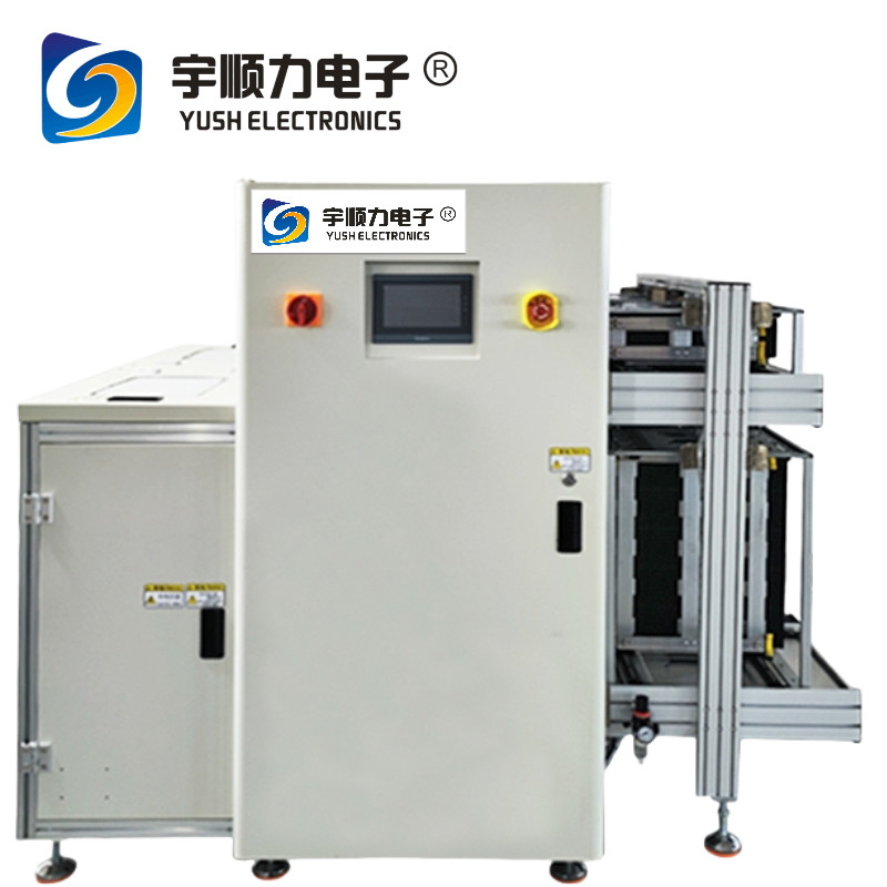 เครื่องถอดของมีฟังก์ชันสองทาง เพื่อแยกกระดานดีจากกระดานไม่ดี กล่องวัสดุของมันมีลักษณะแบบโมดูเลอร์ แบ่งเป็นสองชั้น แต่ละชั้นด้านล่างสามารถเก็บกระดานดี 50 ใบและแต่ละชั้นบนสามารถเก็บ 10 บอร์ดที่ไม่ดีได้, ทําให้การรวบรวมแผ่น PCB ได้อย่างมีประสิทธิภาพ และปรับปรุงความสะดวกและประสิทธิภาพของการจัดการการผลิต